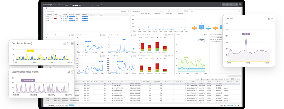 MaxGauge는 데이터베이스 성능 관리를 위한 전문 솔루션으로 데이터베이스 시스템의 가용성 및 성능을 효율적으로 관리합니다.